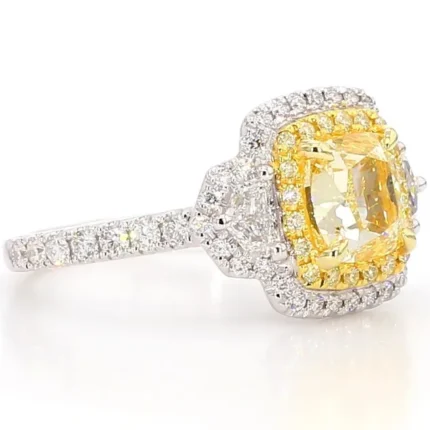 18K Solid Gold IGI Certified Lab Grown Yellow Cushion Diamond 3.05 Carat CTW Cocktail Ring