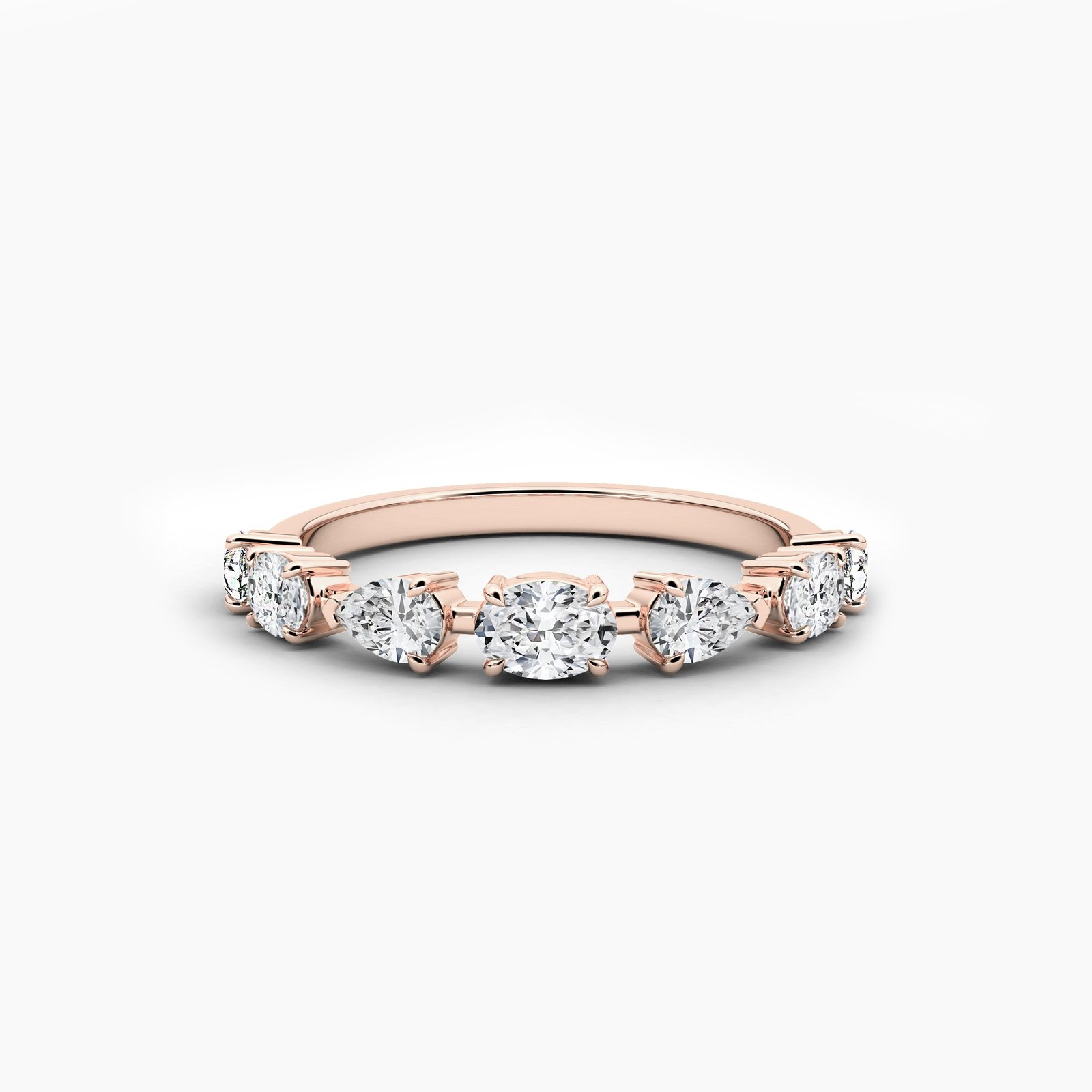Celebrate elegance and romance with the 18K Solid Gold Lab Grown Diamond Oval & Pear Cut Wedding Band. Designed as a stackable anniversary ring, this band features a harmonious mix of pear and oval-cut Lab Grown diamonds, perfectly arranged to create a dazzling visual effect.
