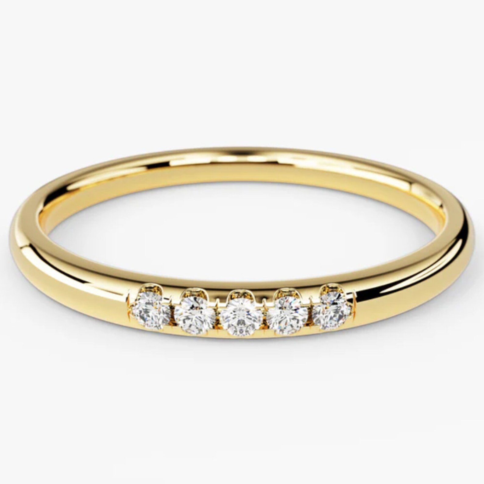 Minimalist 18K gold five-stone pave band with 0.75 CT Lab Grown diamonds. IGI Certified for timeless sparkle and quality.