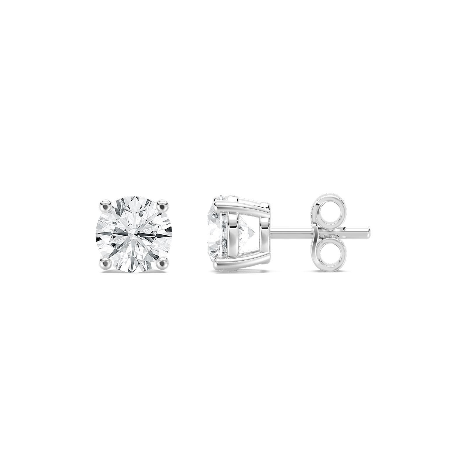 18K Solid Gold Lab Grown Diamond Round-Cut Stud Earrings