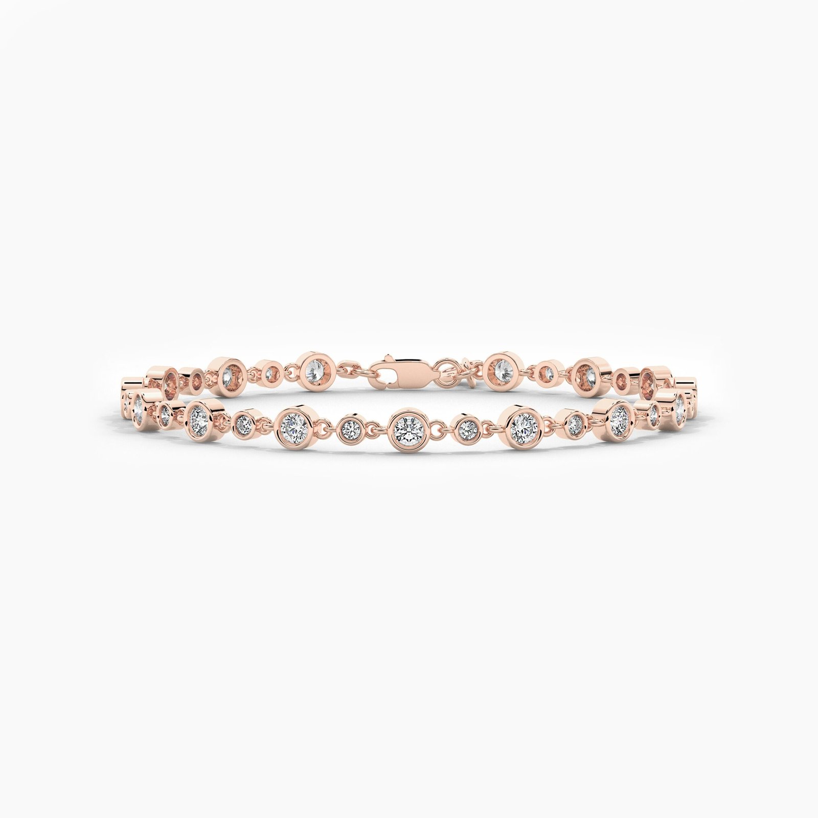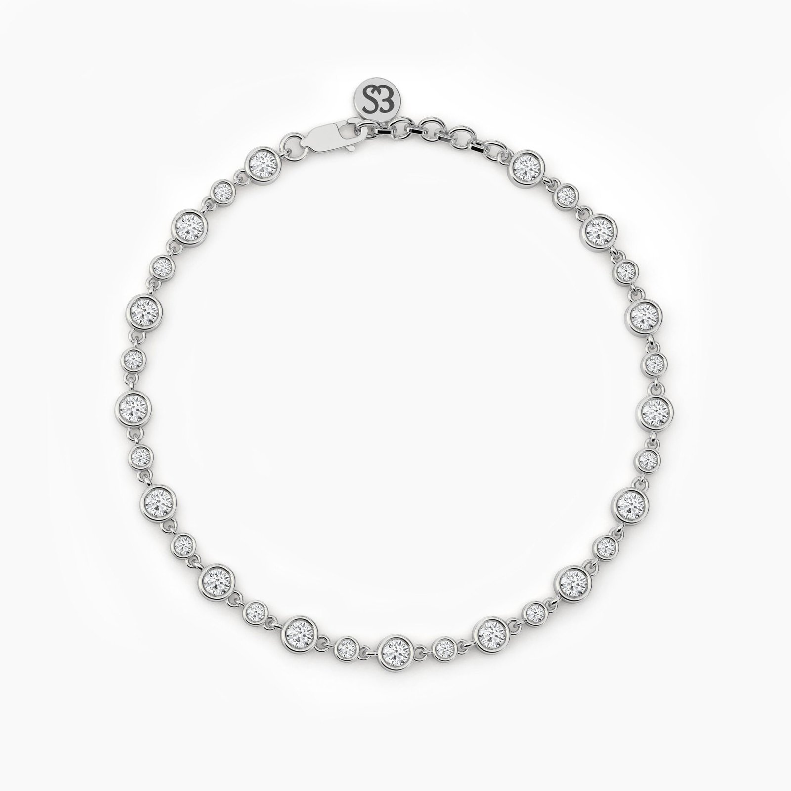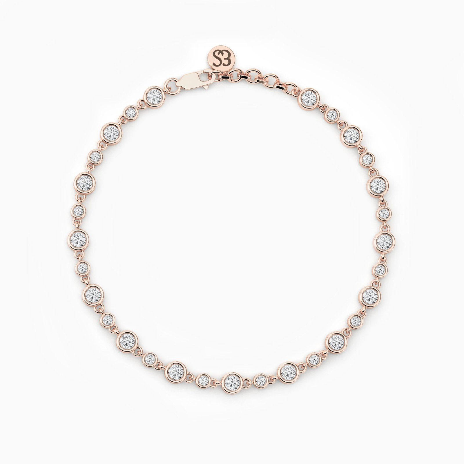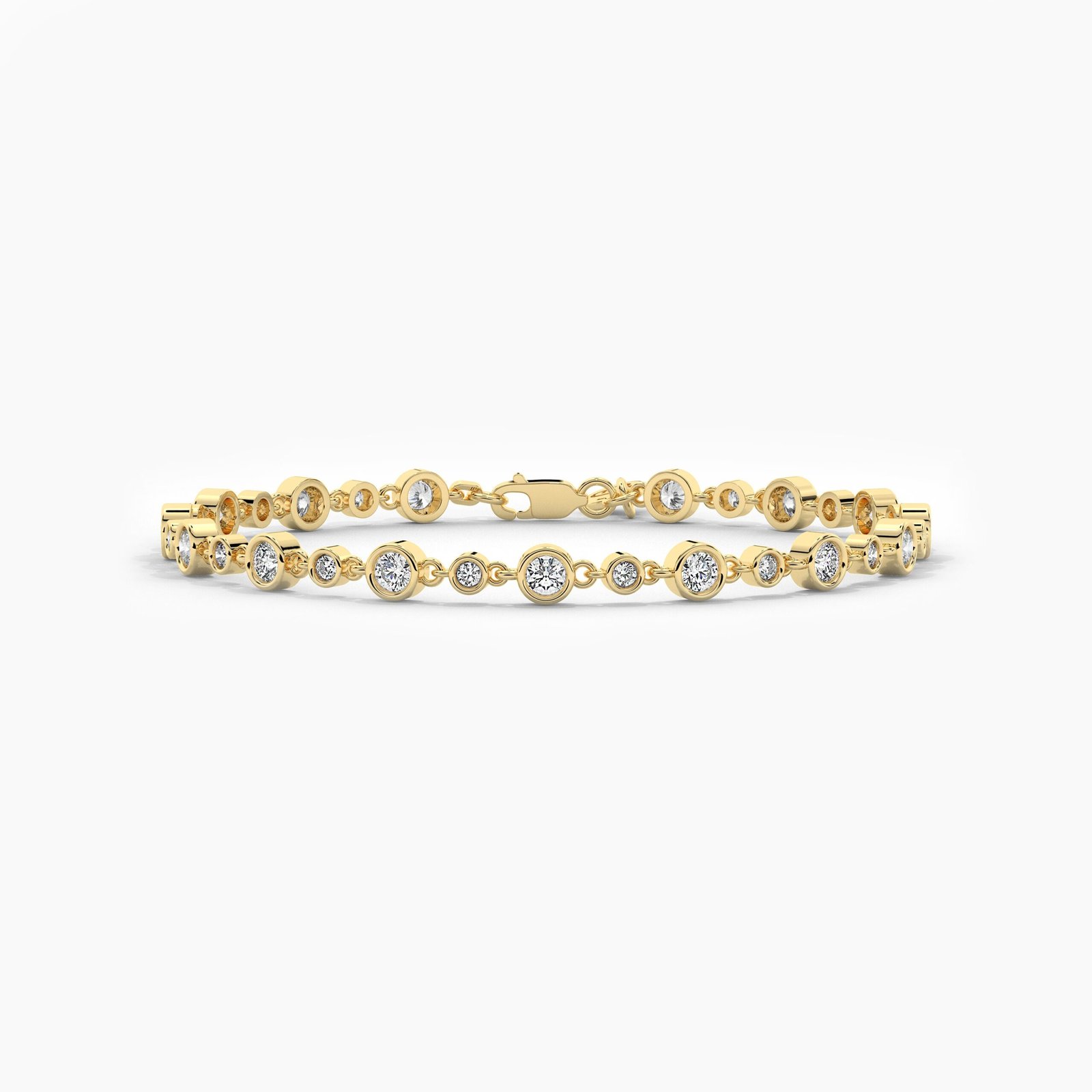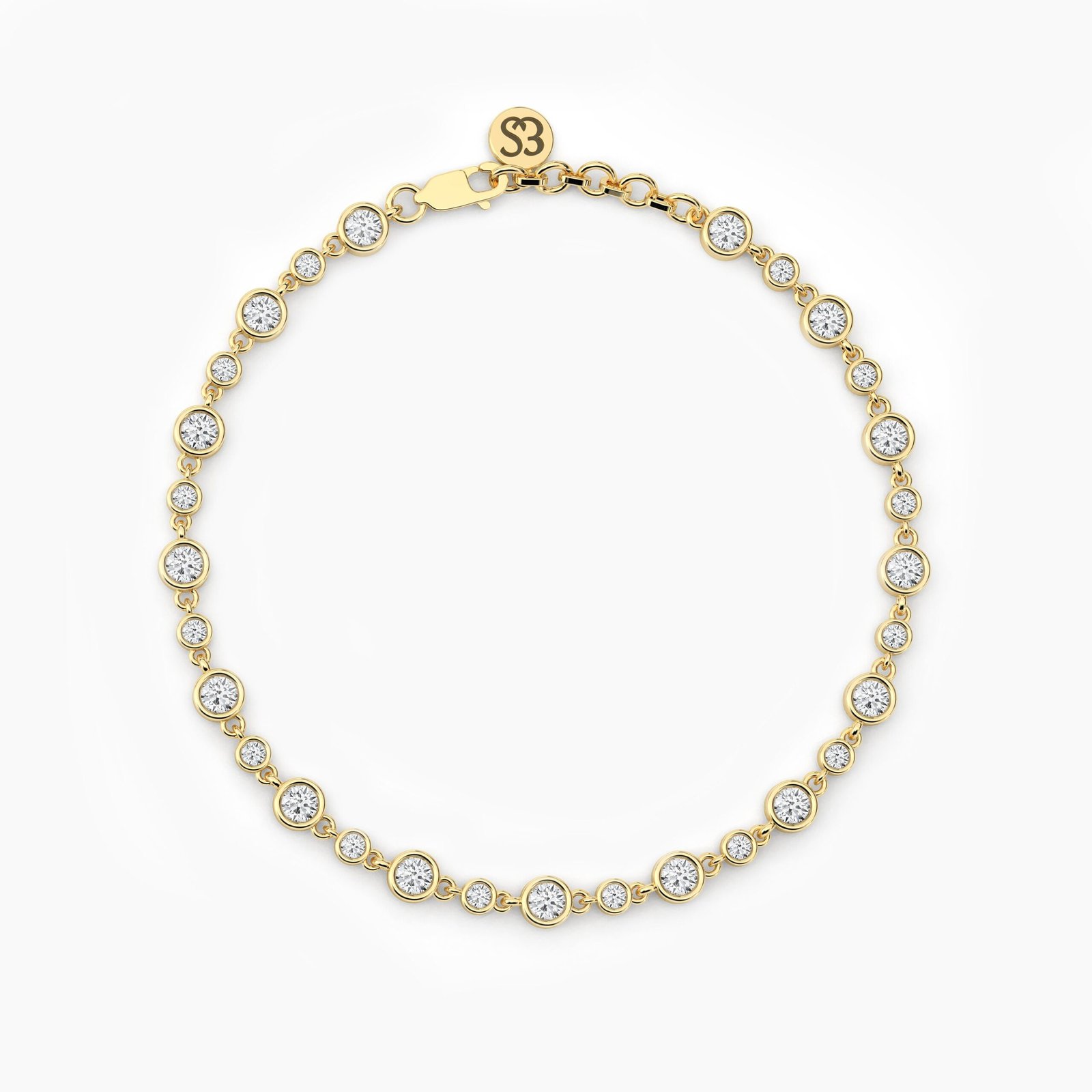 Diamonds measure 3.00mm and 2.00mm, with a total carat weight ranging from 1.00ct to 1.70ct, depending on the bracelet length. Each diamond is graded E color and VS1 clarity, ensuring premium sparkle and quality. Crafted in 18K solid gold, this piece balances durability with lightweight elegance, ideal for stacking with other bracelets or wearing solo.