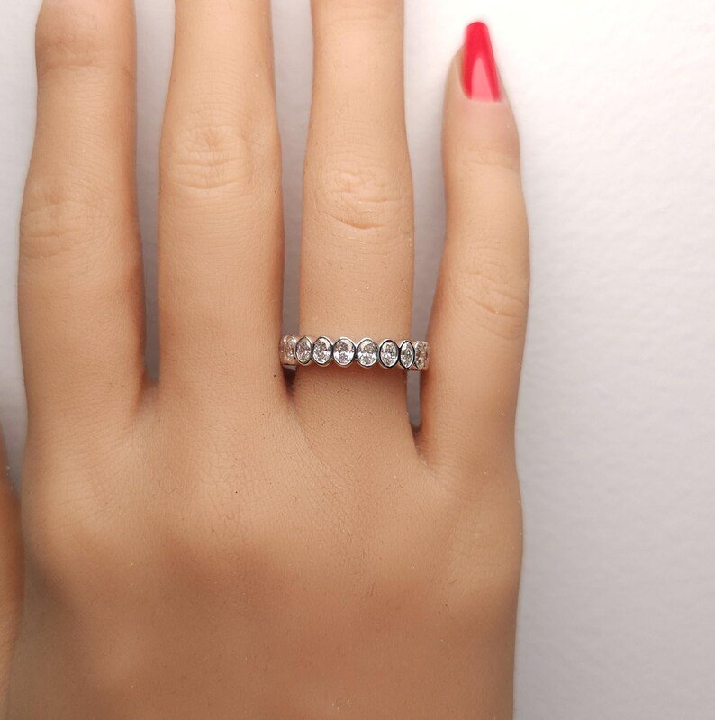 This 3.31ct lab grown diamond band features brilliant oval-cut white diamonds set in 18K solid gold. A timeless, ethical luxury—IGI certified and BIS hallmarked.