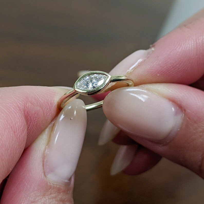 18K Solid Gold Marquise Cut Natural Diamond Pinkie Ring