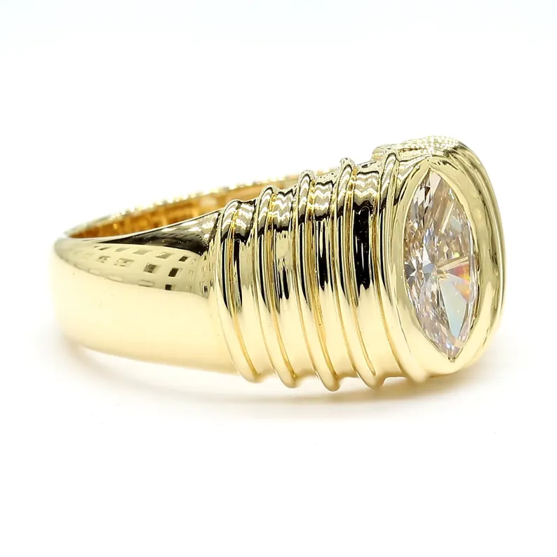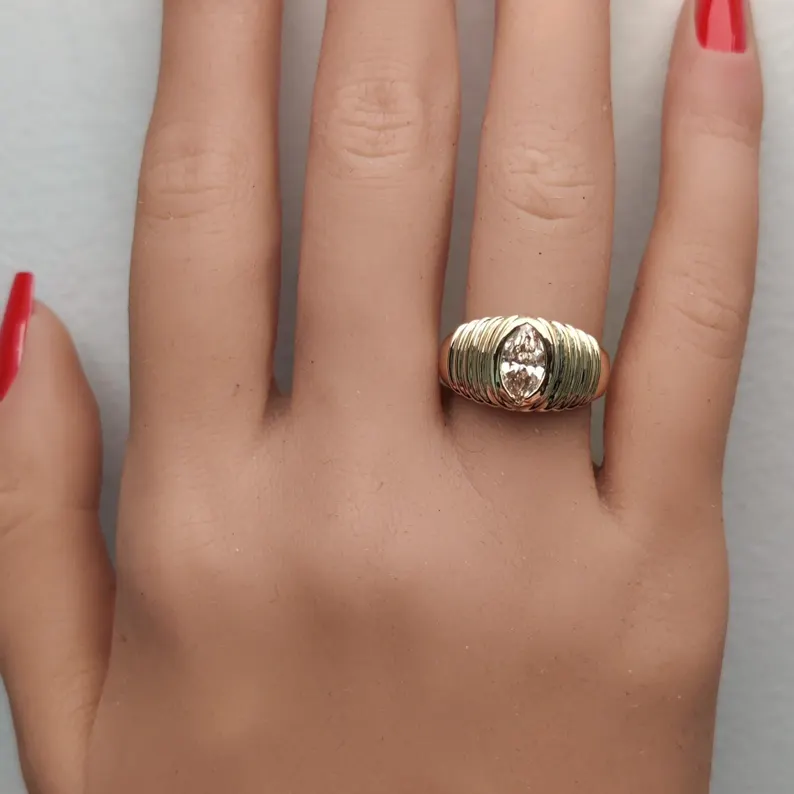 Embrace timeless elegance with our 18K Solid Gold Cocktail Band adorned with 0.73 carats of marquise-cut lab grown diamonds. This ring is an exquisite blend of contemporary luxury and classic refinement, designed to make a bold yet graceful statement.