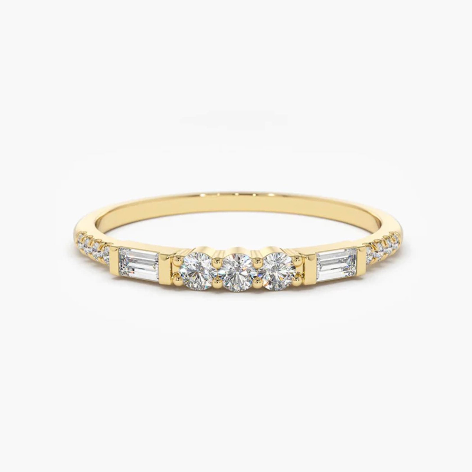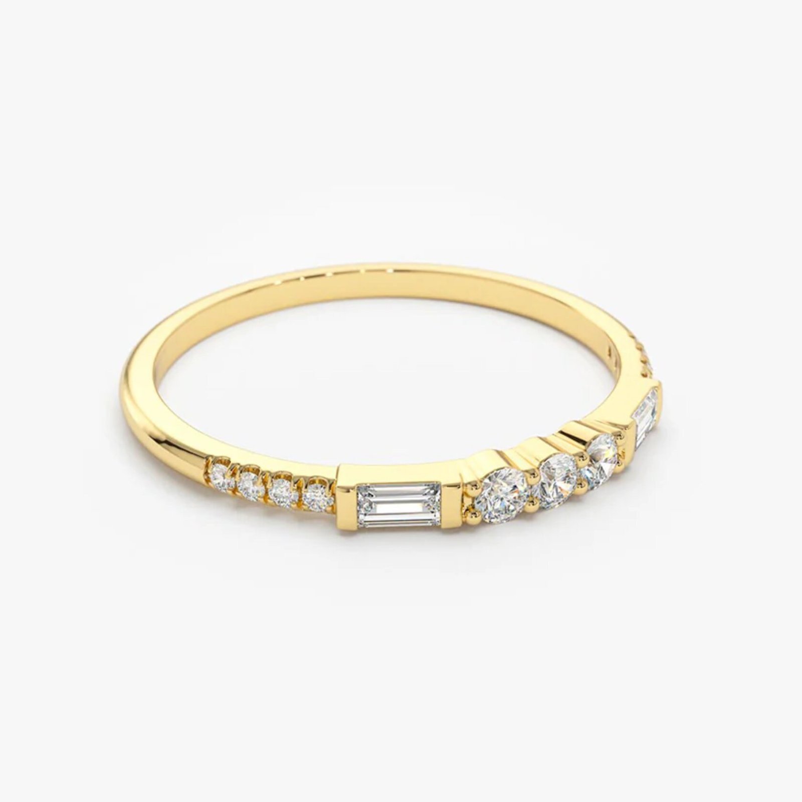 18K Solid Gold Natural Diamond Baguette & Round Cut Half Eternity Wedding Band