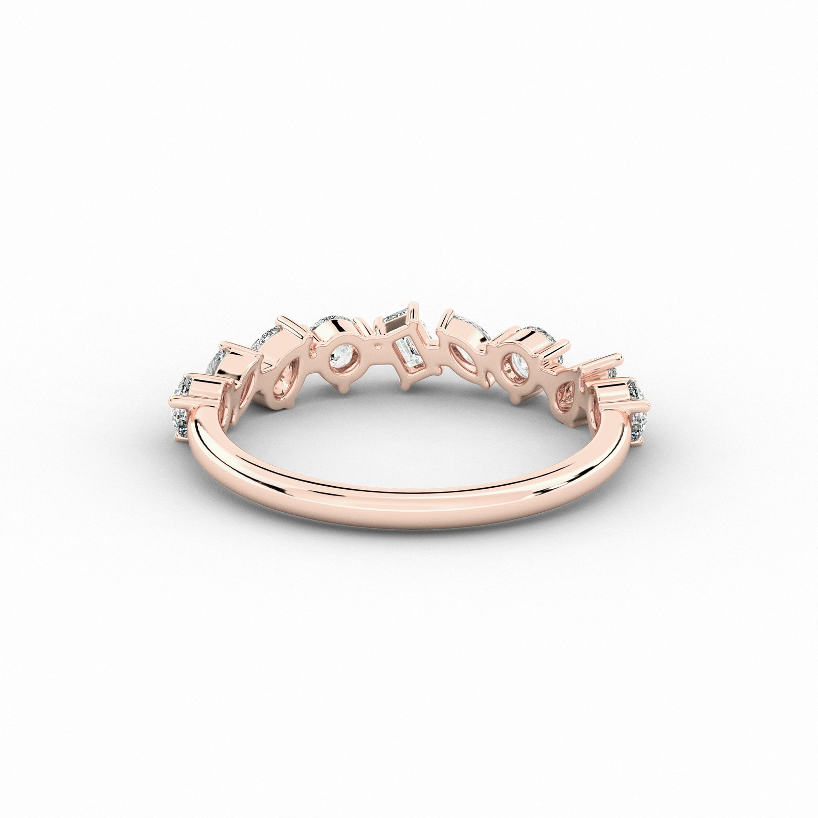 18K Solid Gold Natural Diamond Multi-Shape Half Eternity Band – Unique Cluster Wedding Ring