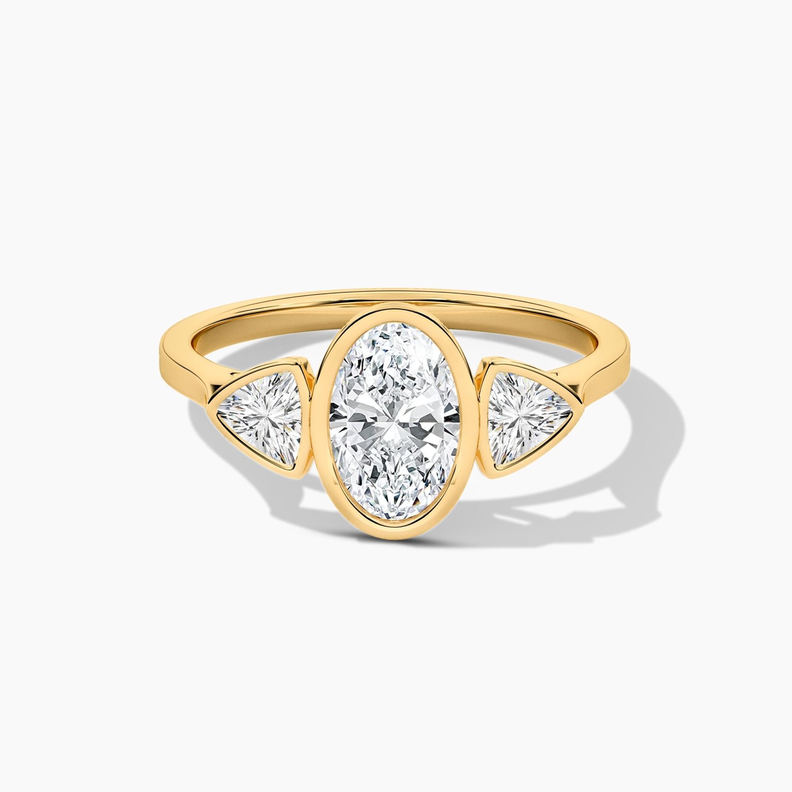 18K gold promise ring with 1.50ct oval natural diamond, trillion side diamonds, E VS1, GIA certified, BIS hallmarked. Perfect wedding or engagement ring.