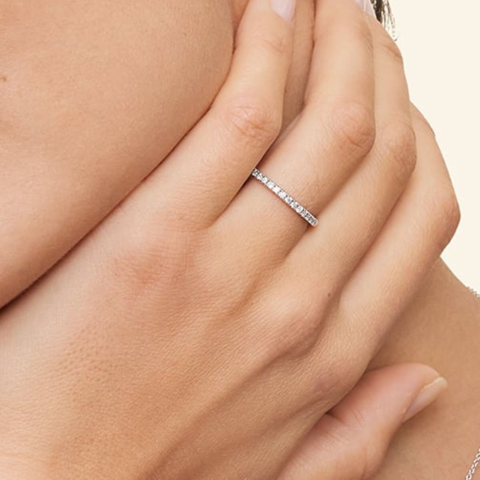 18K solid gold pavé set full eternity band with 0.60ct round brilliant natural diamonds. GIA & BIS certified, perfect for weddings or stacking.