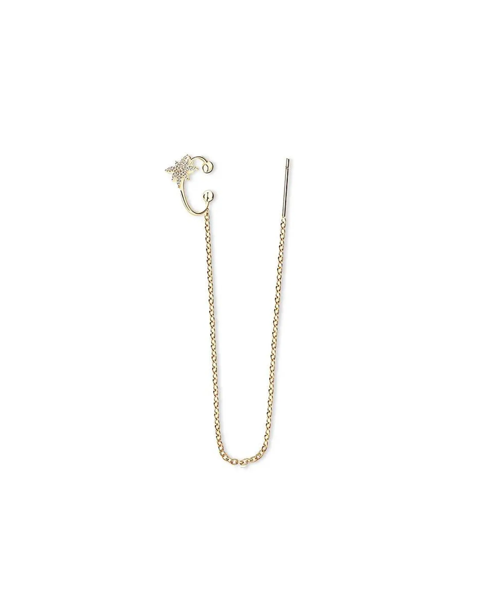 Chic 18K Gold Star Chain Diamond Cuff Earring with 0.22ct IGI-certified natural diamonds.threader and clip-on design.