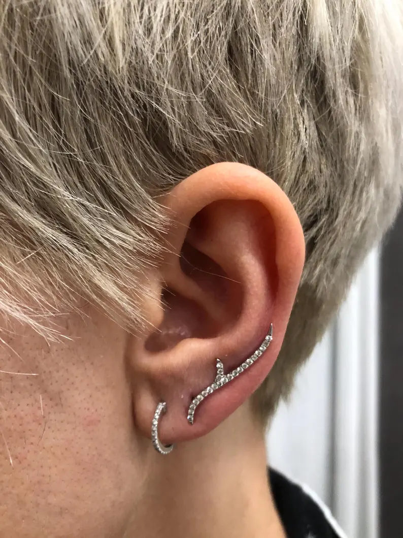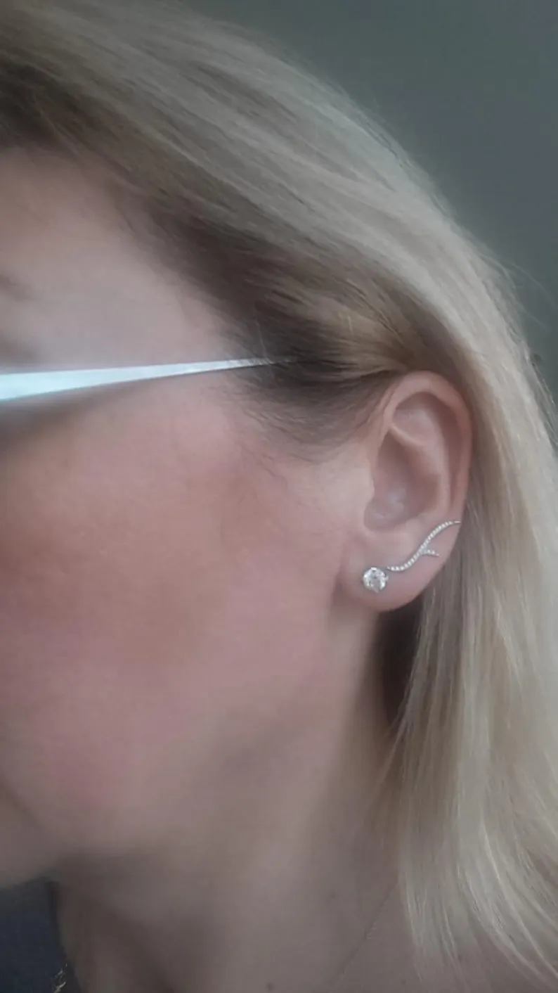 Make a bold and refined statement with the 18K Solid Gold Natural Diamond Thorn Tribal Stud Earrings. Crafted from premium 18K solid gold, these edgy yet elegant earrings showcase a distinctive thorn-inspired tribal design, meticulously set with 46 round-cut natural diamonds totaling approximately 0.25 carats.