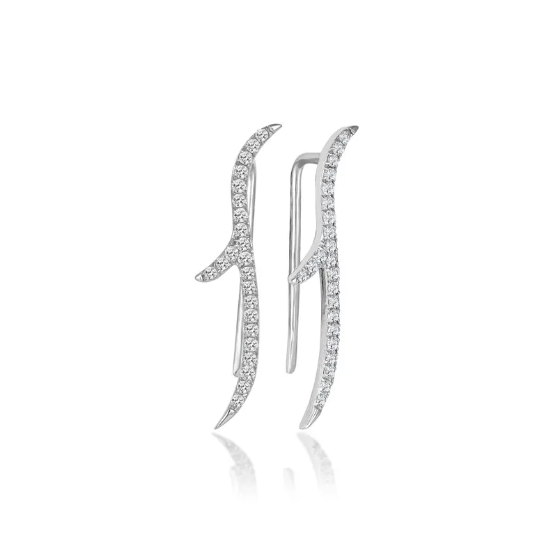 18K gold tribal thorn stud earrings with 46 round-cut natural diamonds totaling 0.25ct. GIA certified, VS1 clarity.