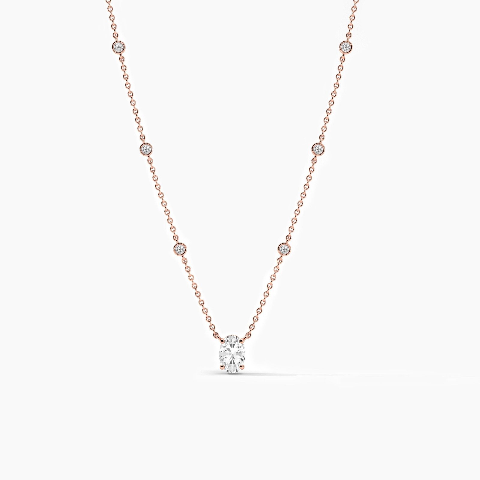 Grace your neckline with the refined beauty of our 18K Solid Gold Oval-Cut Natural Diamond Yard Necklace. Expertly handcrafted in 18K solid gold, this elegant necklace showcases a striking 8.00mm x 5.50mm (±0.05mm) oval-cut center diamond, flanked by six 2.00mm (±0.05mm) round side diamonds, totaling 1.15 carats (±0.05 CT).