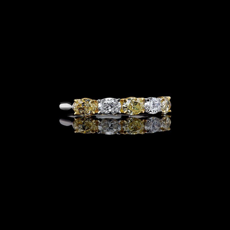 Oval lab grown yellow & white diamond wedding band in 18K gold, 1.17cts total. IGI certified, BIS hallmarked.