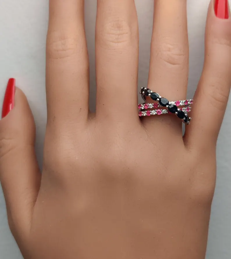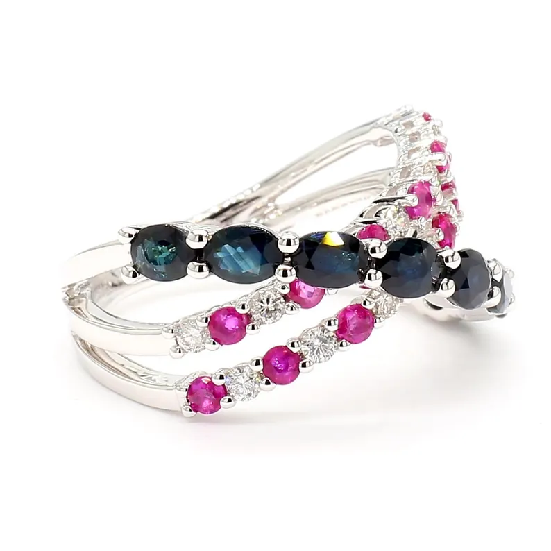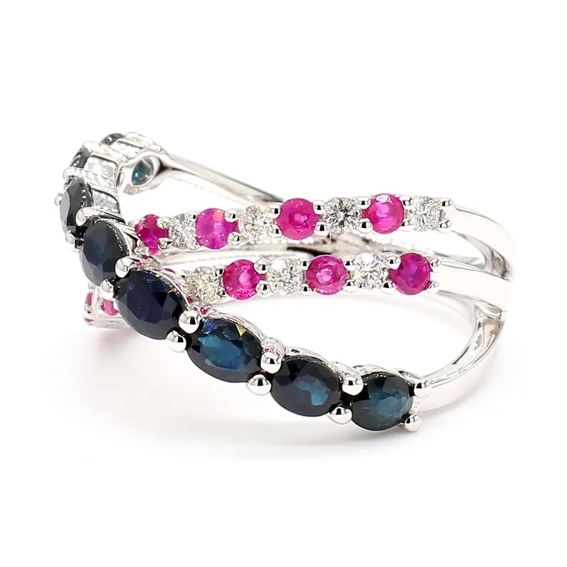 18K Solid Gold Oval Sapphire, Ruby & Lab Grown Diamond 2.84 Carat Cocktail Band