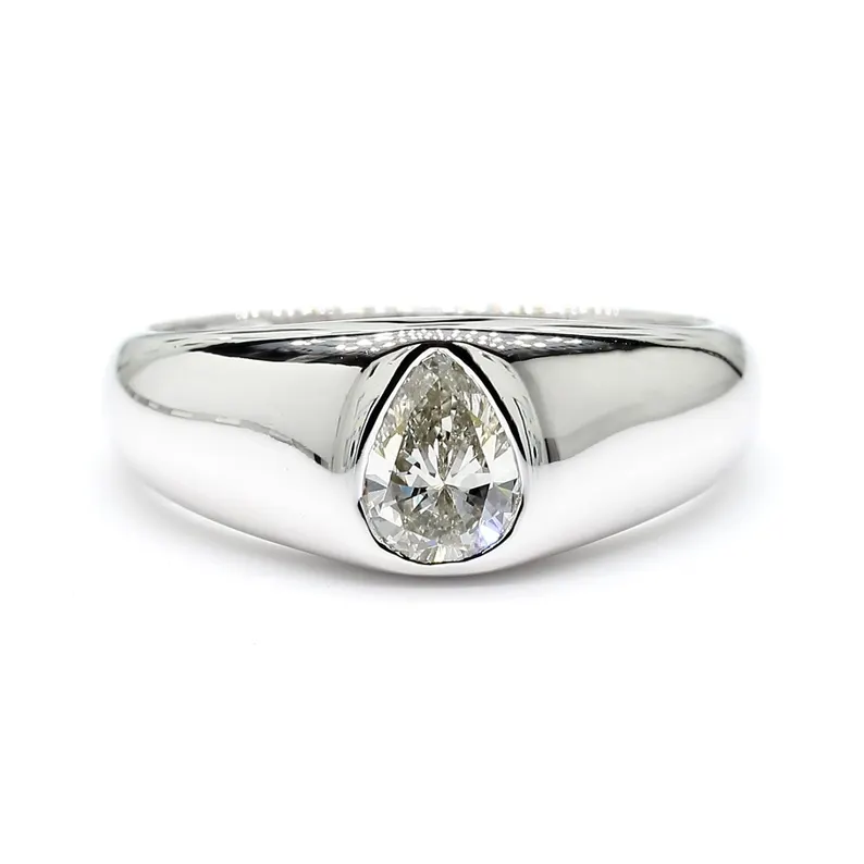 With a total diamond weight of 0.52 carats, the stone is precisely cut and polished to showcase exceptional brilliance, graded E color and VS1 clarity for remarkable purity and sparkle. Its minimalist design enhances the beauty of the pear-shaped diamond, making it an effortlessly chic statement—perfect for both everyday wear and special occasions.