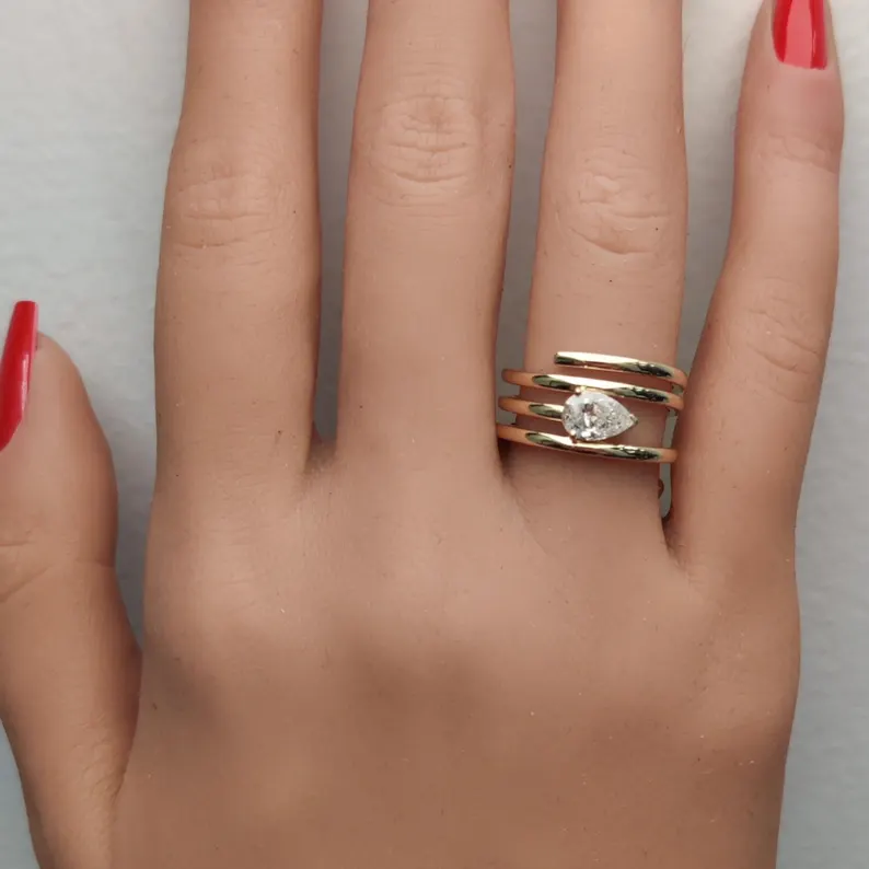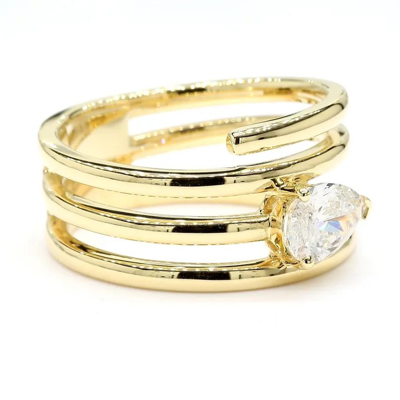Exude timeless elegance with this 0.72 Carat Pear Lab Grown Diamond Cocktail Ring, meticulously crafted in 18K Solid Gold. At its heart lies a captivating pear cut lab grown white diamond, expertly faceted to reflect maximum brilliance and fire.