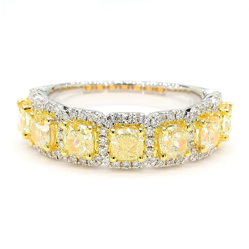 Bold and luminous, this 2.06 carat cocktail band in 18K gold showcases radiant Natural yellow diamonds with sparkling white accents.
