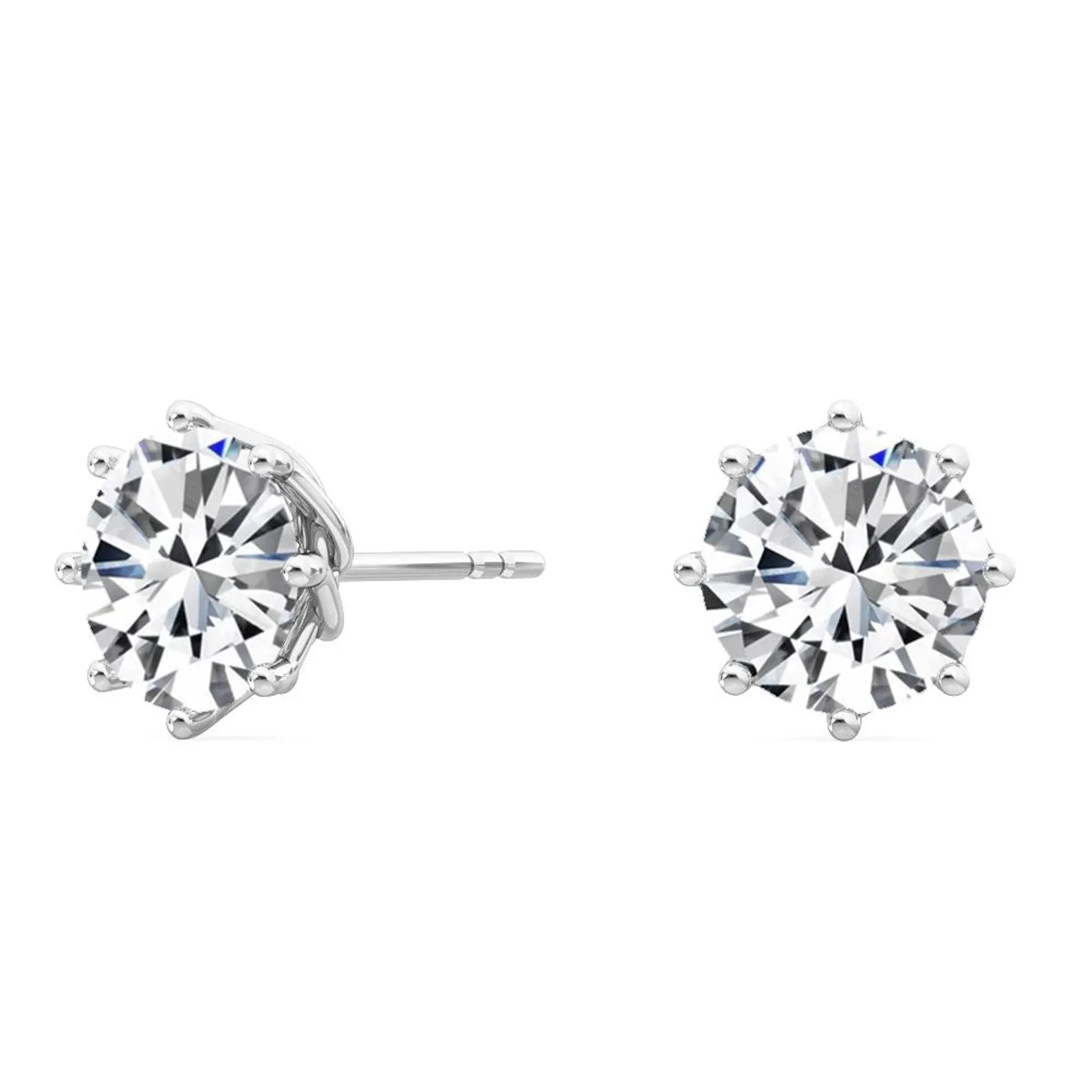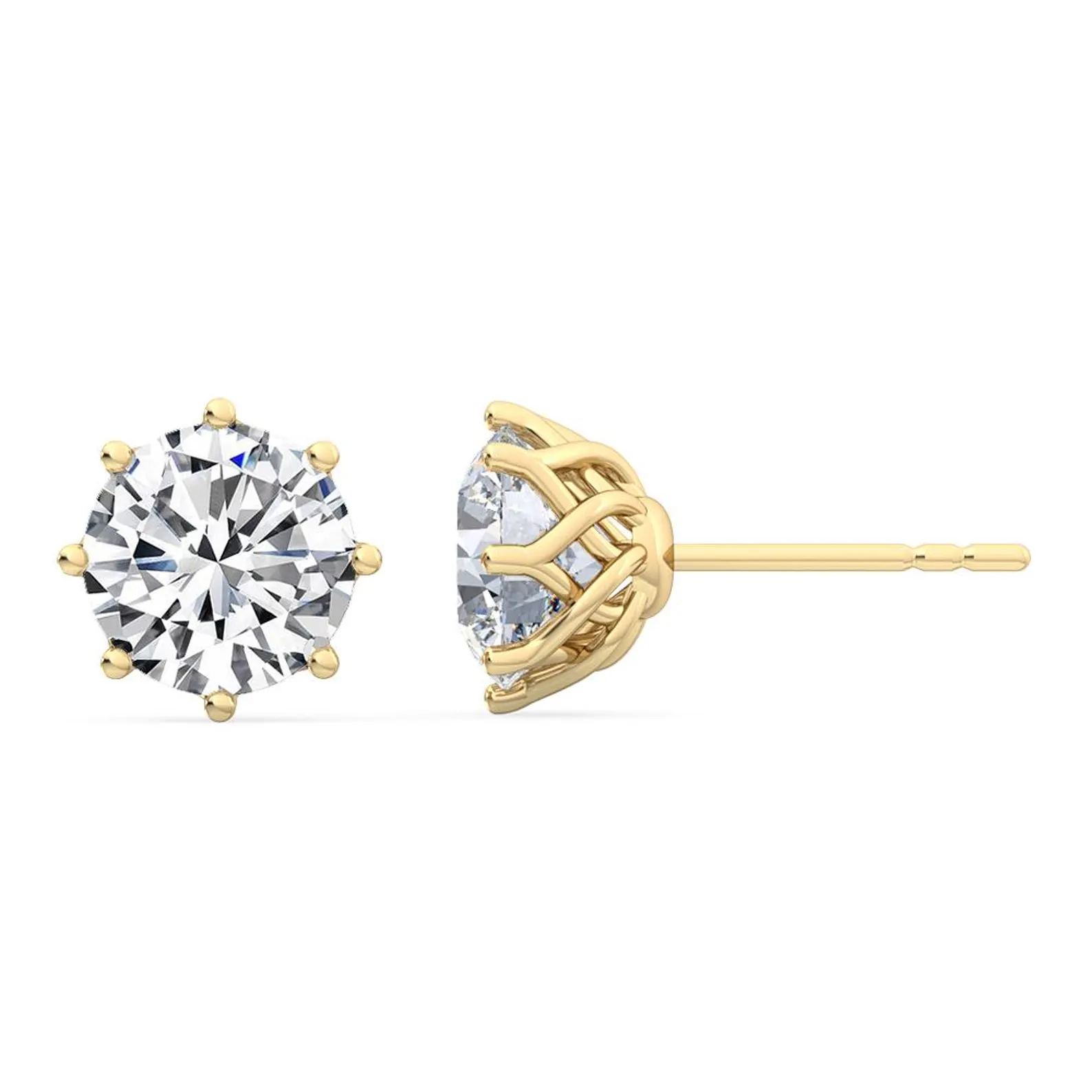 Classic 18K Solid Gold Diamond Stud Earrings with 2.0 CTW round brilliant natural diamonds in an elegant 8-prong setting. GIA certified & BIS hallmarked, E color, VS1 clarity.