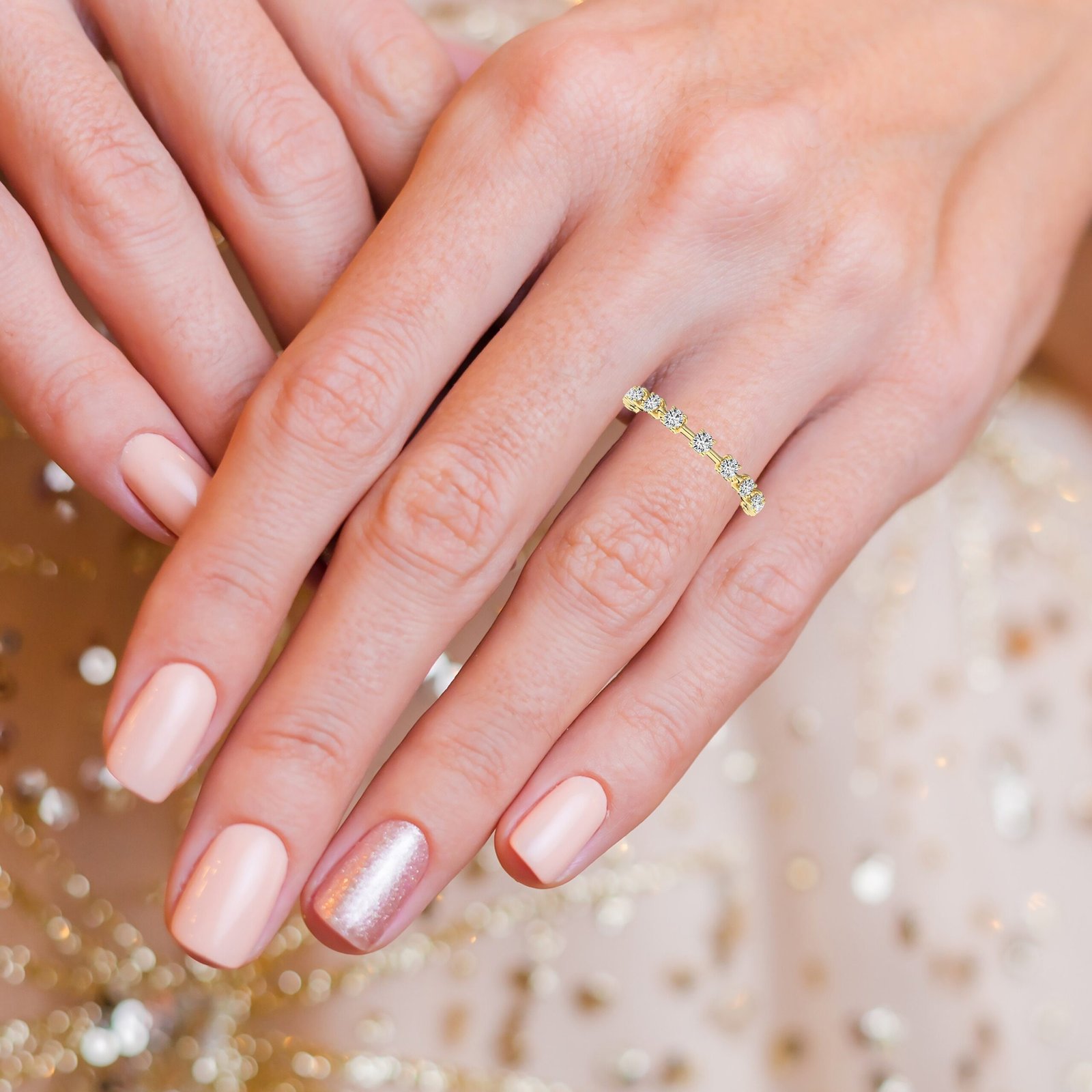 Elegant 18K gold ring with 11 round natural diamonds. A timeless anniversary gift with GIA & BIS certification and a sleek, minimalist design.
