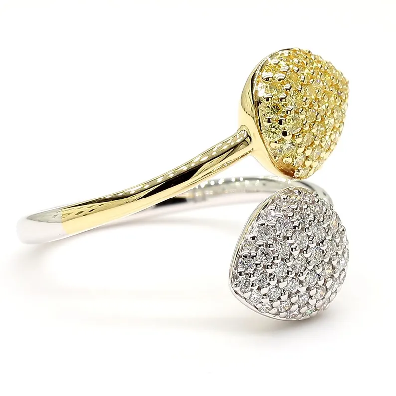 Elegant and radiant, this 0.62 carat cocktail ring in 18K gold showcases Natural yellow and white diamonds with timeless brilliance.