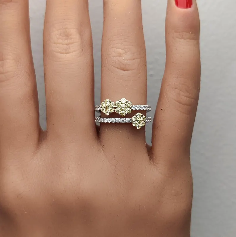 Each diamond sparkles with G color and VS2 clarity, showcasing exceptional brilliance. The unique combination of warm yellow hues and classic white diamonds creates a bold yet elegant aesthetic, ideal for cocktail parties, celebrations, or stylish everyday wear.