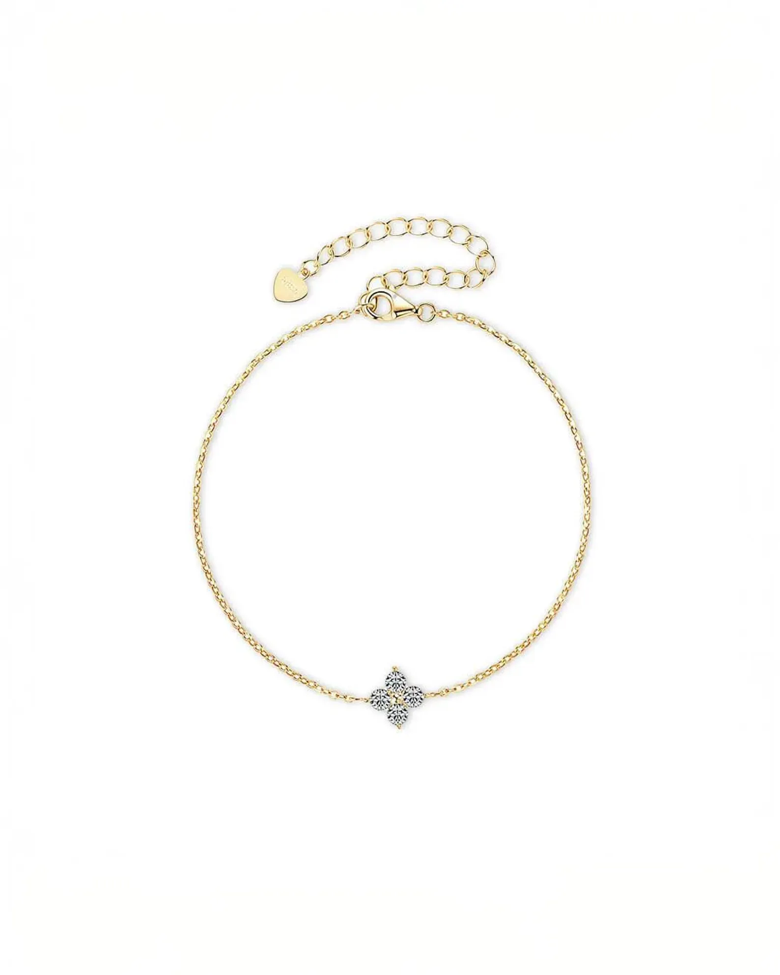 18K Solid Gold Single Flower 0.4ct Lab Grown Diamond Bracelet | Four Leaf Clover Diamond Bracelet