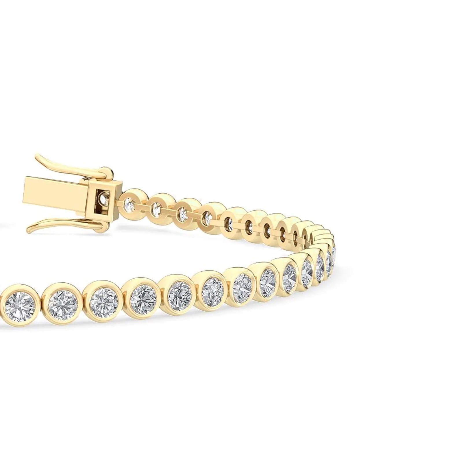 3.11 Ct Lab Grown diamond bezel-set tennis bracelet in 18K solid gold. IGI certified. A modern classic blending elegance and luxury.