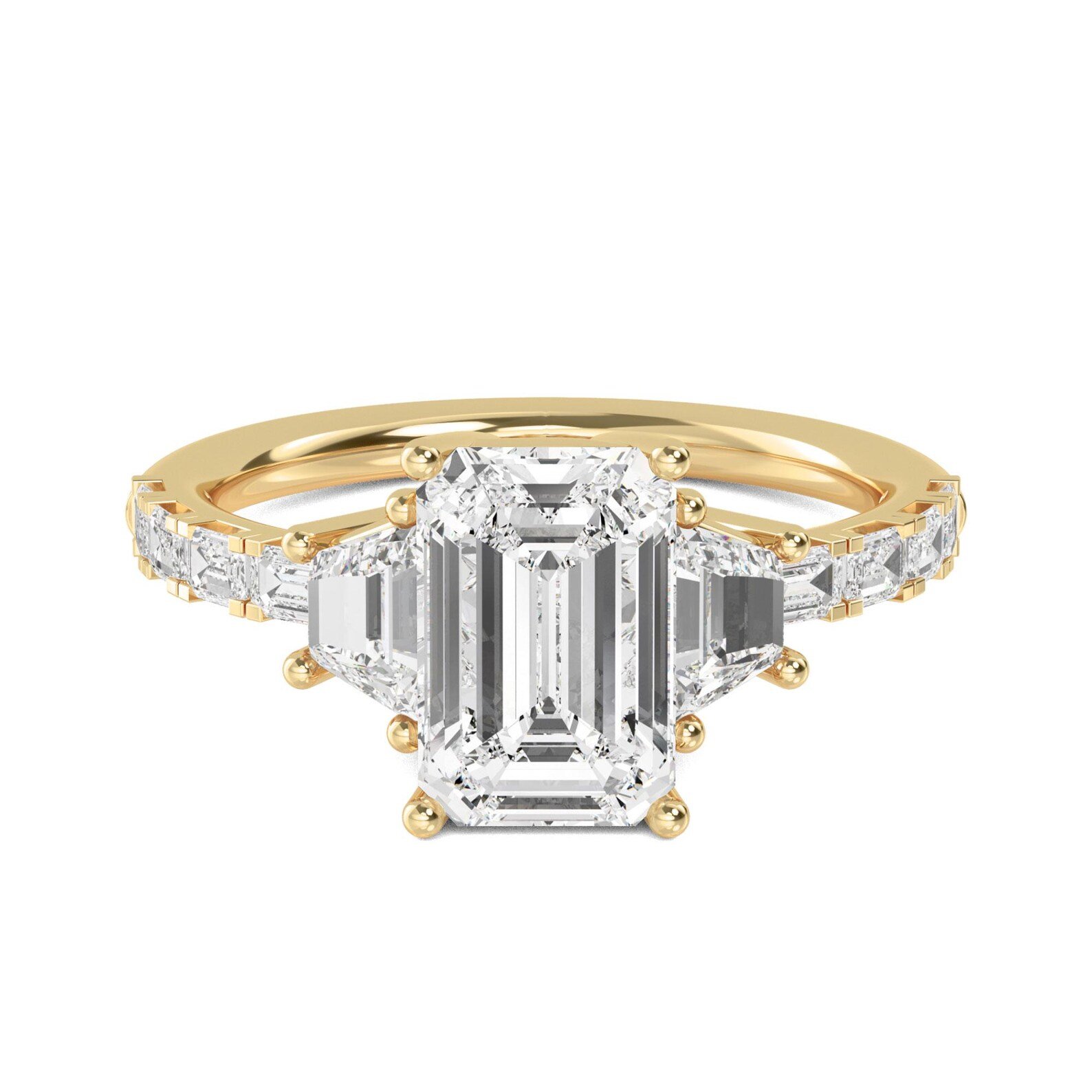 - Side Stones: Trapezoid and emerald‑cut Diamond