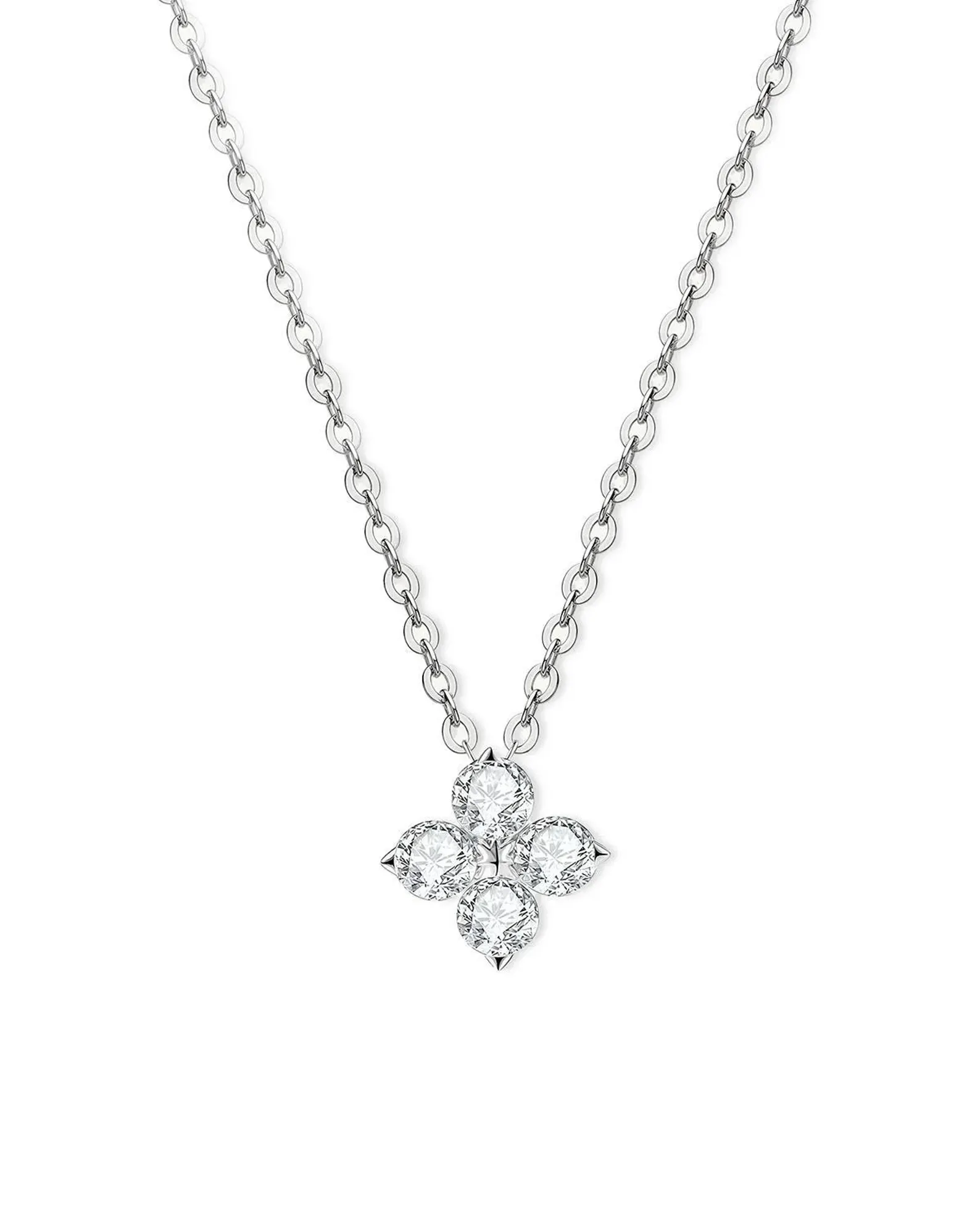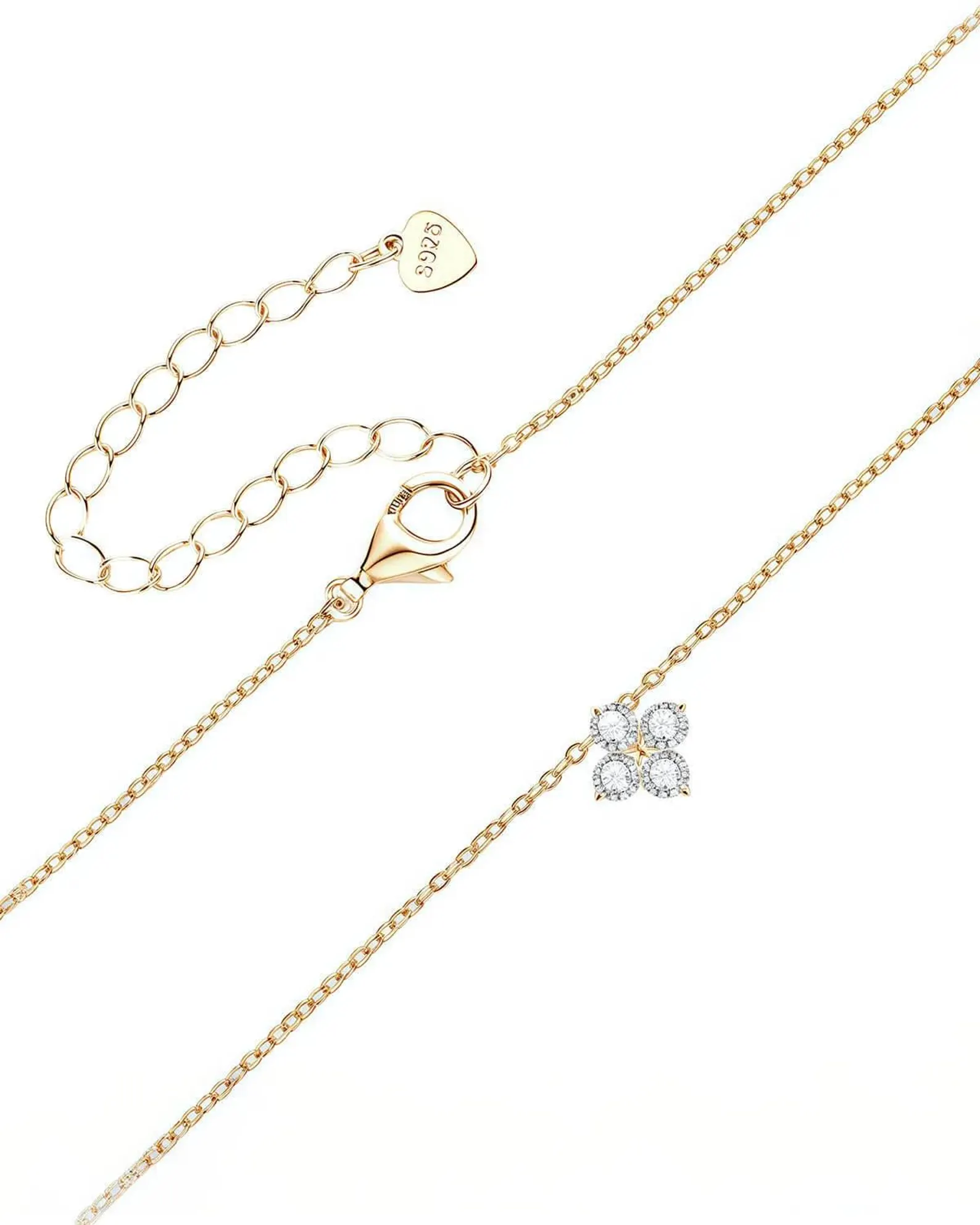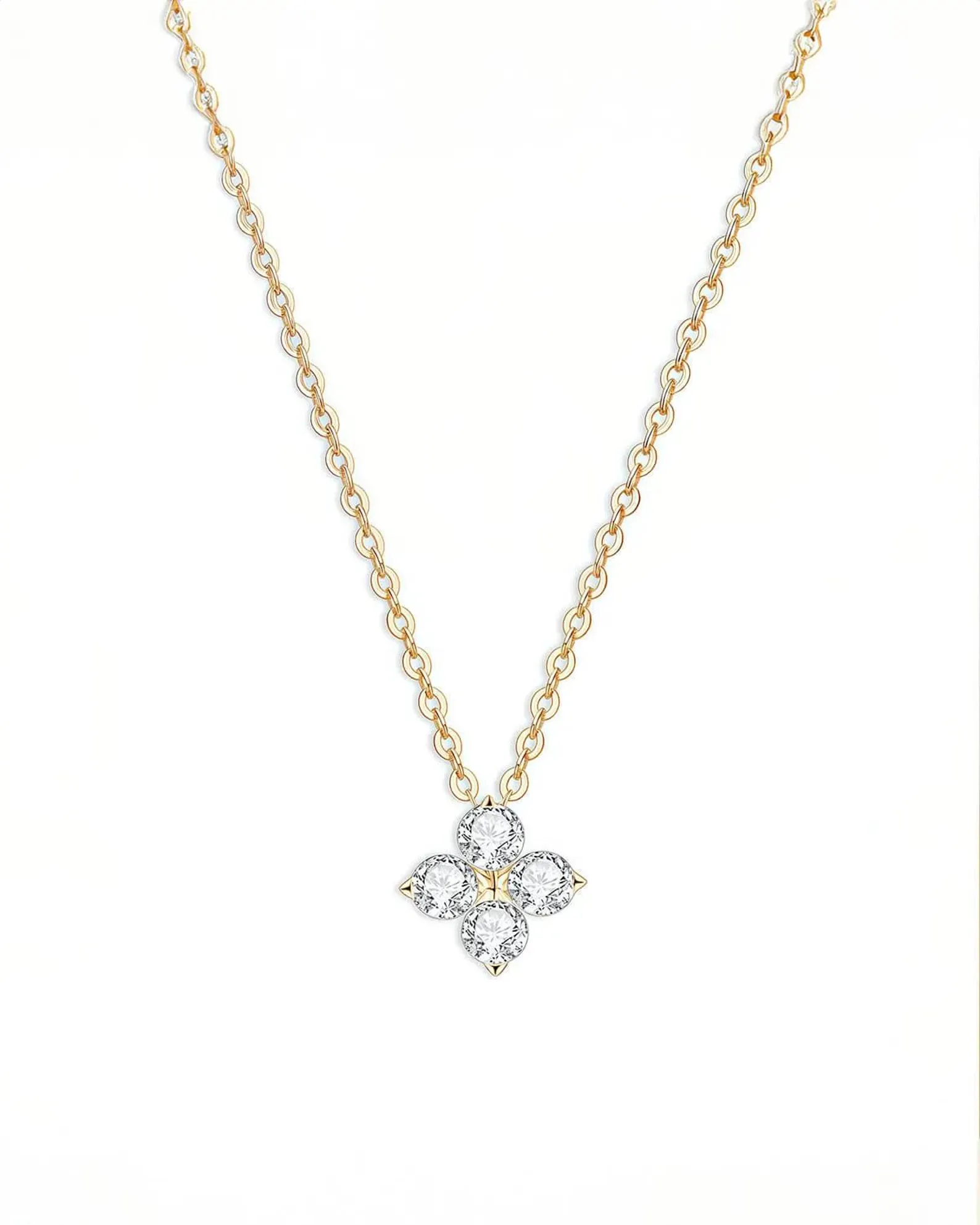 18K Solid Gold Natural Diamond Clover Necklace | Dainty Diamond Necklace