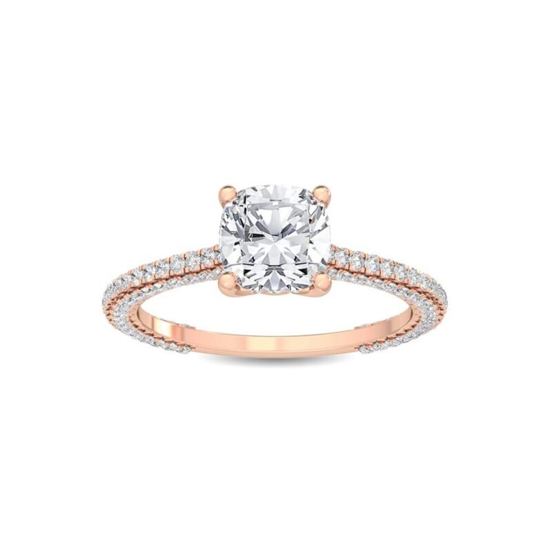 18K Solid Gold 1.69 CT Cushion Cut Natural Diamond Engagement Ring | Pavé Solitaire Bridal Ring
