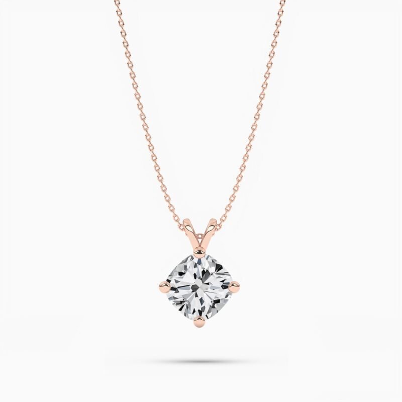 18K Solid Gold Natural Diamond 1.00 Ct Round Solitaire Necklace – Minimalist Interlocking Design