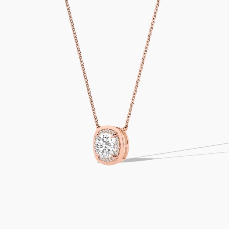 18k Solid Gold Halo Natural Diamond Necklace For Women