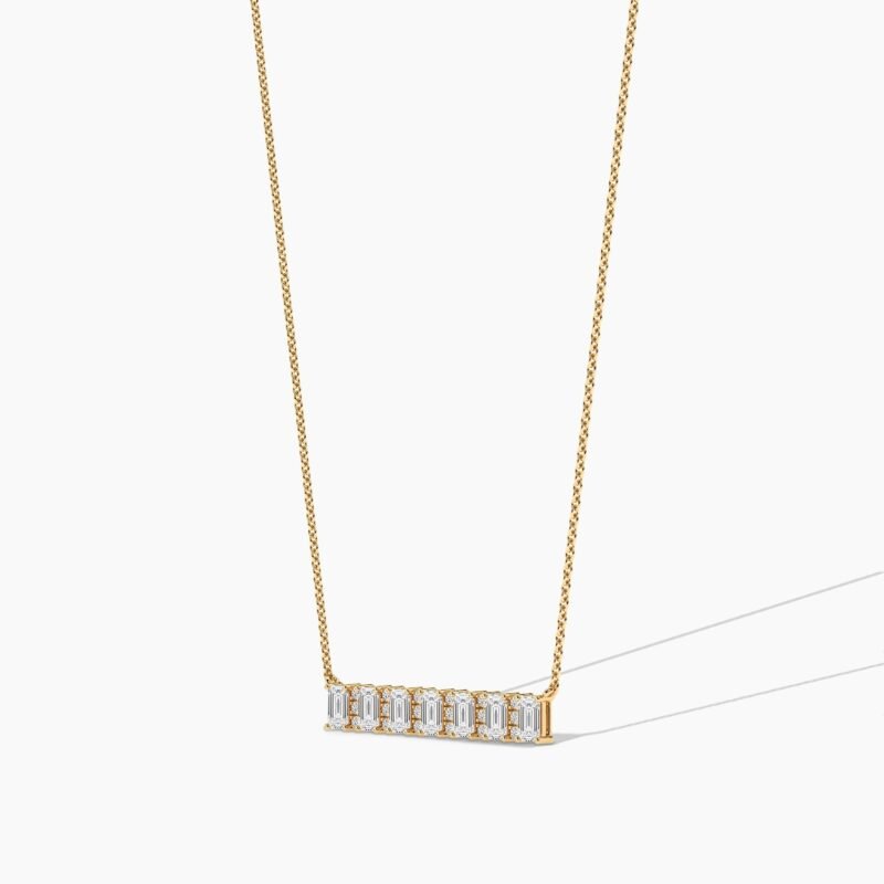 18k Solid Gold Emerald & Round Cut Natural Diamond Bar Necklace