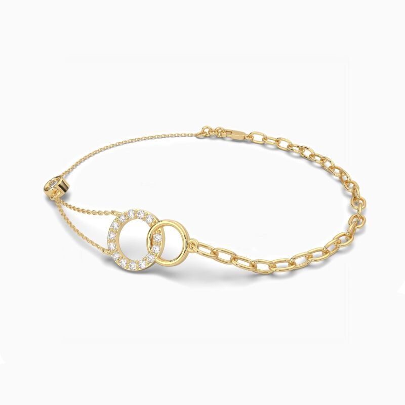 18k Solid Gold Natural Diamond Circle Stone Bracelet