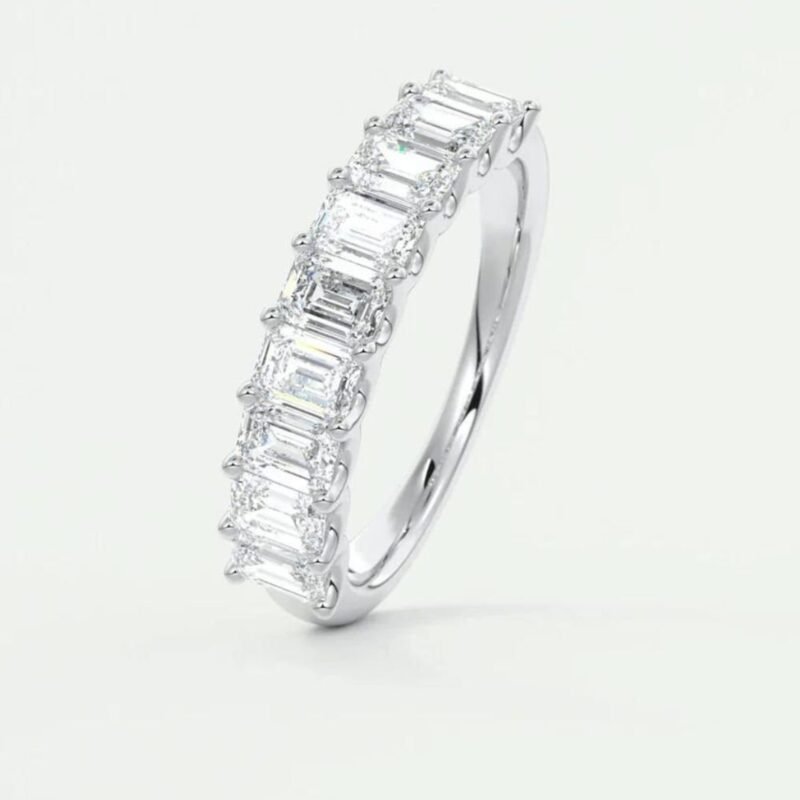 18k Solid Gold Emerald Cut Natural Diamond Wedding Band – Half Eternity Matching Band