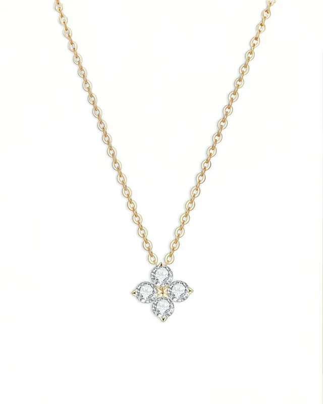 18K Solid Gold Natural Diamond Clover Necklace | Dainty Diamond Necklace