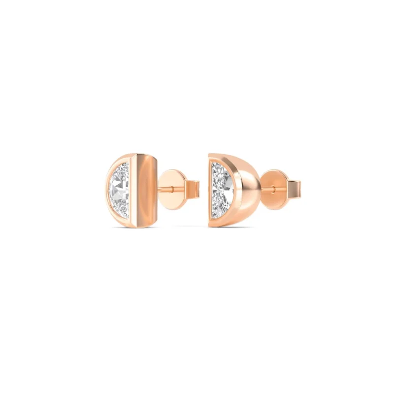 18K Solid Gold 0.34 Ct Lab Grown Diamond Half Moon Stud Earrings