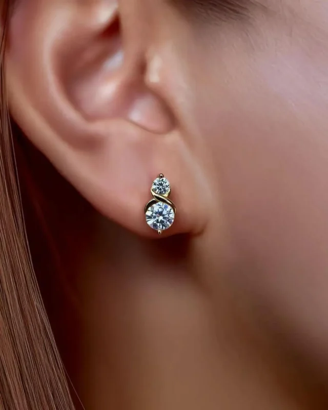 18K Solid Gold Lab Grown Diamond Stud Earrings | Infinity Symbol Double Stone Diamond Stud